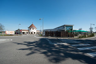 Aménagement d'un pôle restauration sur Rixheim (68100), rue de l'Aérodrome, avec un restaurant Mc Donald, une boulangerie restaurant Poulaillon et un restaurant La Pataterie.
